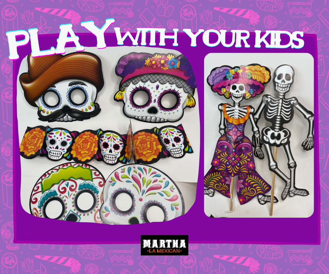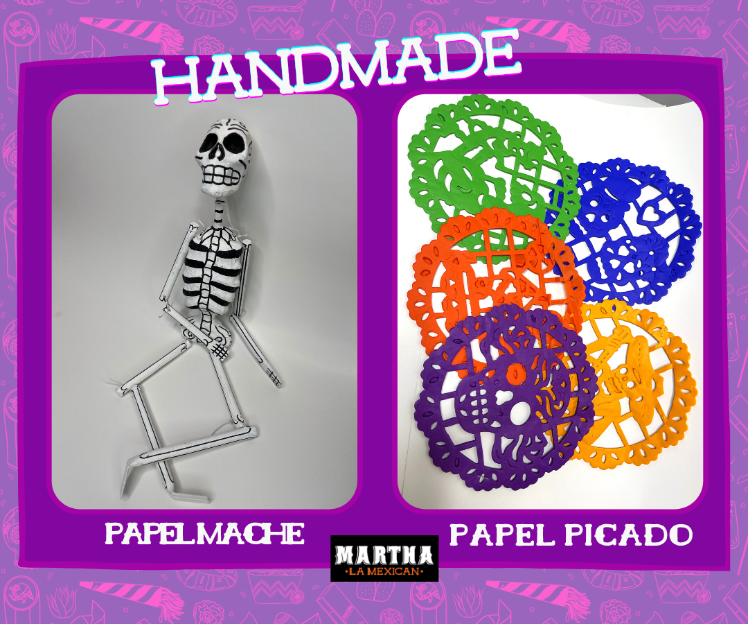 The Traditional Papel Picado is made in Puebla by artesanos. You will have activities to do with the family like playing with our títeres - puppets, with the skulls masks or by painting your own papel mache skulls.